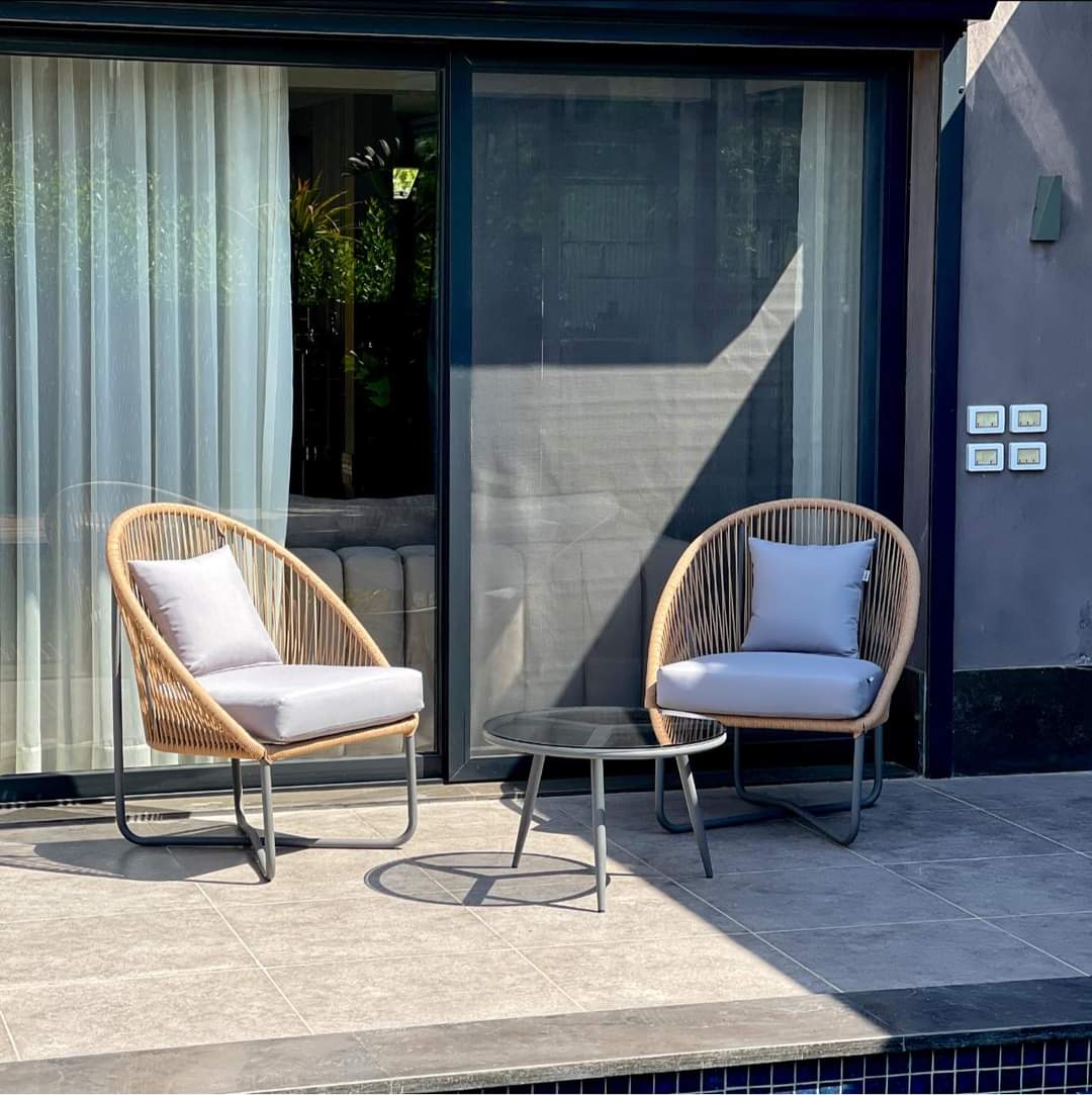 اقتن طقم خارجي أنيق حتى تشعر بالتجديد في حديقتك، مكون من كرسي مع ترابيزة مزود بشلت، واجعل حديقتك دائمًا مُجهزة لك ولضيوفك